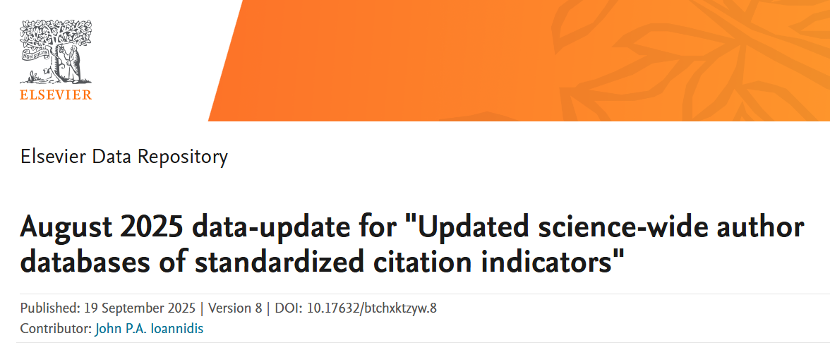 近日,斯坦福大学(Stanford University)和爱思唯尔(Elsevier)出版社共同发布了2025年《全球前2%顶尖科...